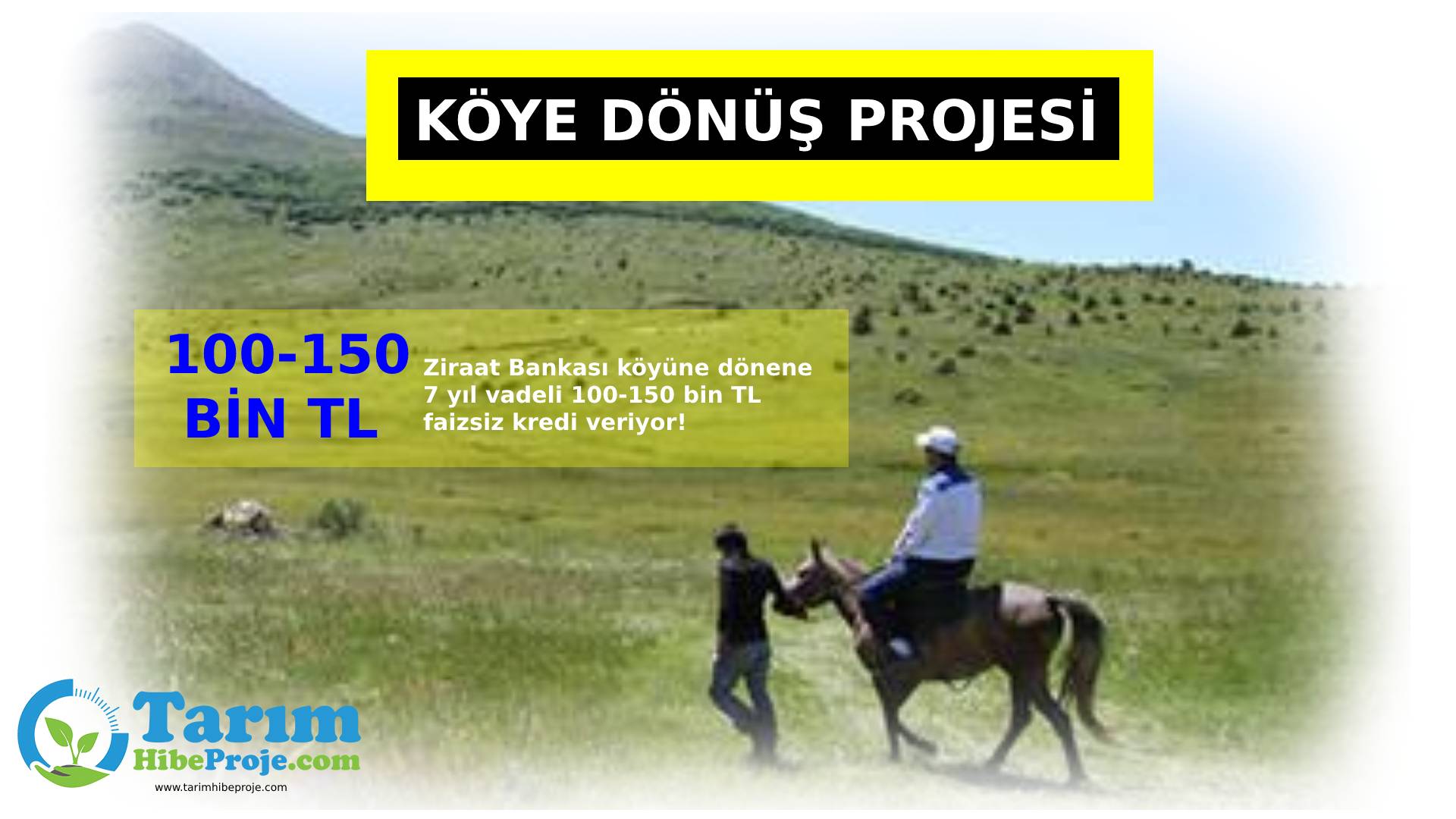 Ziraat Bankası köyüne dönene 7 sene vadeli 100-150 bin TL faizsiz kredi veriyor. Proje kapsamında Tarım ve Orman Bakanlığı İl Tarım ve Orman Müdürlükleri ile Ziraat Bankası arasında imzalanan anlaşma kapsamında belirlenen illerde ilk yıl ödemesiz geri kalanı da 6 yıl vadeli olmak üzere toplamda 84 ay ay vadeli kredi desteği verilmektedir.