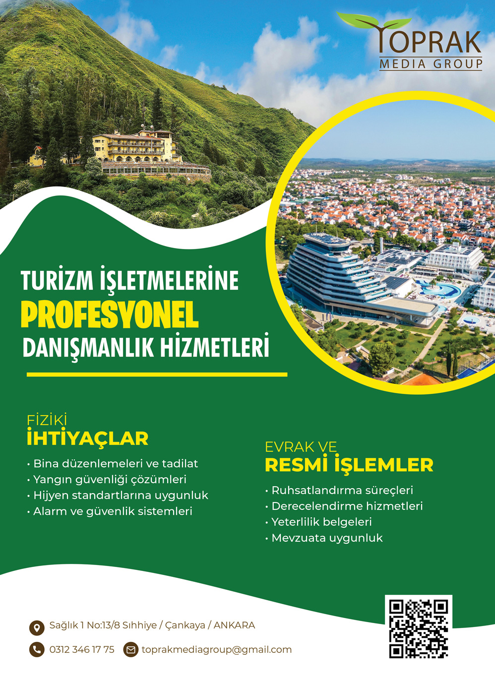 Turizm sektöründeki işletmelere, başarıya ulaşmaları için kapsamlı danışmanlık hizmetleri sunuyoruz. Hizmetlerimiz 🔹 Fiziki İhtiyaçlar Bina düzenlemeleri ve tadilat Yangın güvenliği çözümleri Hijyen standartlarına uygunluk Alarm ve güvenlik sistemleri 🔹 Evrak ve Resmî İşlemler Ruhsatlandırma süreçleri Derecelendirme hizmetleri Yeterlilik belgeleri ve mevzuata uygunluk